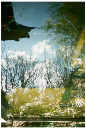 森林植物園にて、水面に写った空を逆さにしてみました。
